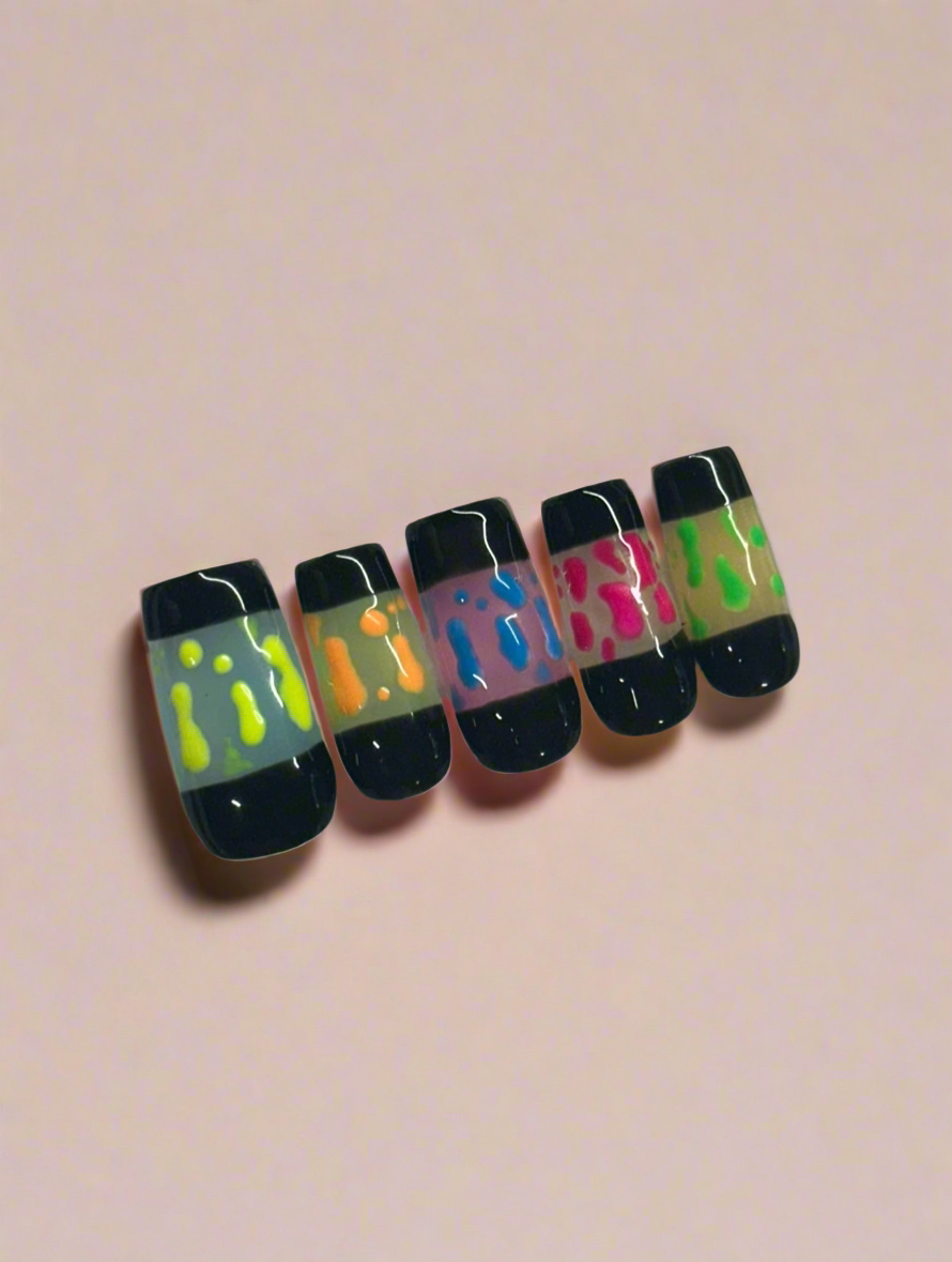 Inspired by the groovy movement of retro lava lamps, this set features vibrant swirls of color that flow right on your fingertips 💖