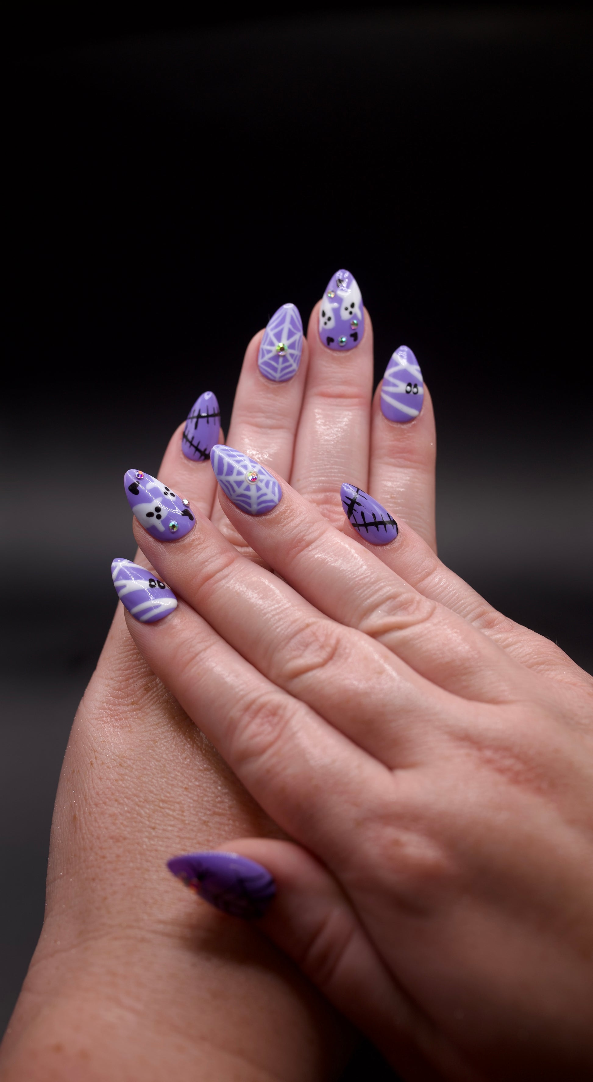 Spooky season meets violet vibes 👻✨ This set has it all. Ghosts, mummies, cross stitches, and spider webs 🕸️ for the ultimate Halloween mix!